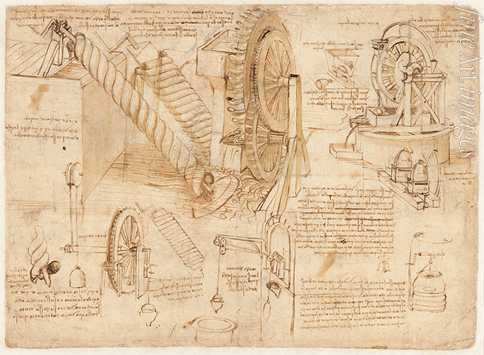 Codex Atlanticus, folio 26 verso: Hydraulic machines