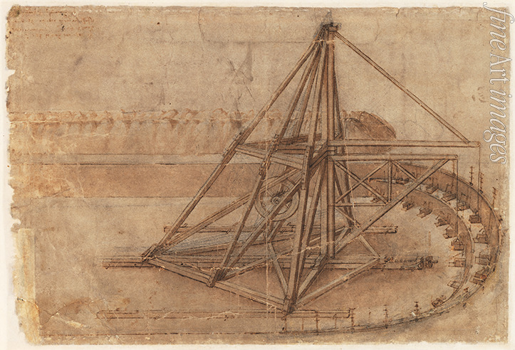 Codex Atlanticus, folio 4 recto: wooden excavation machine