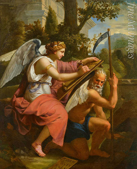 Allegory of history writing on the wings of time