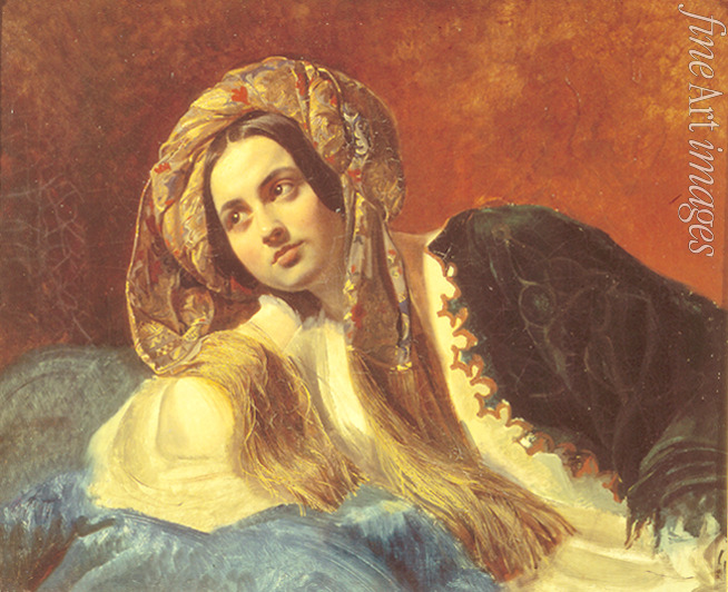 Mittag, Tageszeiten, Melancholie, Romantik, Schönheit, Orientalisch, Junge Frau, Frauenbildnis, Frauenporträt, Turban, Türkei, Türkin, Harem, Orient, Moslemin, Moslemische Frau, Serail, Odaliske, Brjullow, Brüllow, Briullow, Briuloff