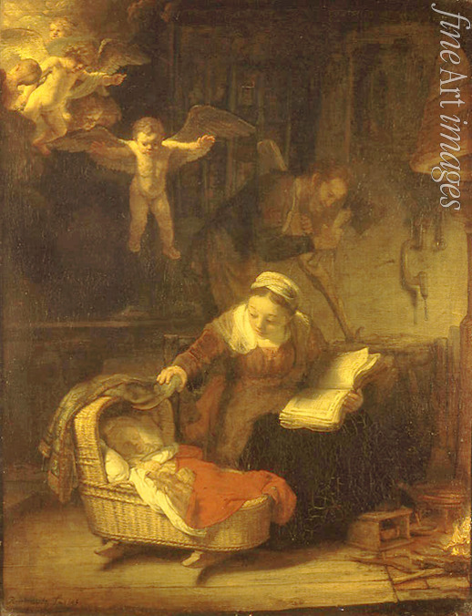 Idyll, Mutterschaft, Madonna, Barock, Bibel, Neues Testament, Maria, Gottesmutter, Jesuskind, Heilige Familie, Mutter, Buch, Christi, Jungfrau, Christuskind, Joseph, Madonna und Kind, Engeln, Josef von Nazaret, Heim, Wiege, Marienbild, Josef, Marienfigur, Madonnenbild, Heiliger Josef, Heiliger Joseph, Marienbildnis