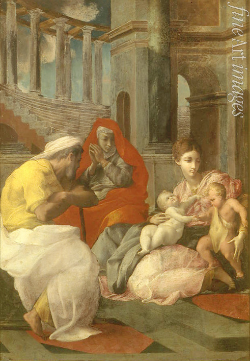 Schlüssel-wörter: Bibel, Renaissance, Neues Testament, Maria, Madonna mit dem Kind, Johannes der Täufer als Kind, Gottesmutter, Jesuskind, Die Heilige Familie, Palast, Heilige Elisabeth, Christuskind, Elisabet, Johannesknabe, Marienbild, Marienfigur, Madonnenbild, Heilige Elisabet