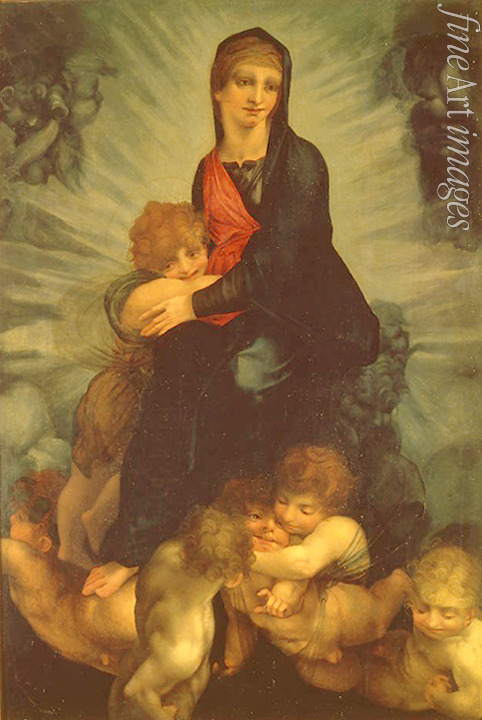 Idyll, Liebe, Freude, Mutterschaft, Madonna, Bibel, Renaissance, Neues Testament, Maria, Gottesmutter, Jesuskind, Heilige Familie, Mutter, Christi, Jungfrau, Christuskind, Madonna und Kind, Engeln, Marienbild, Marienfigur, Madonnenbild, Marienbildnis