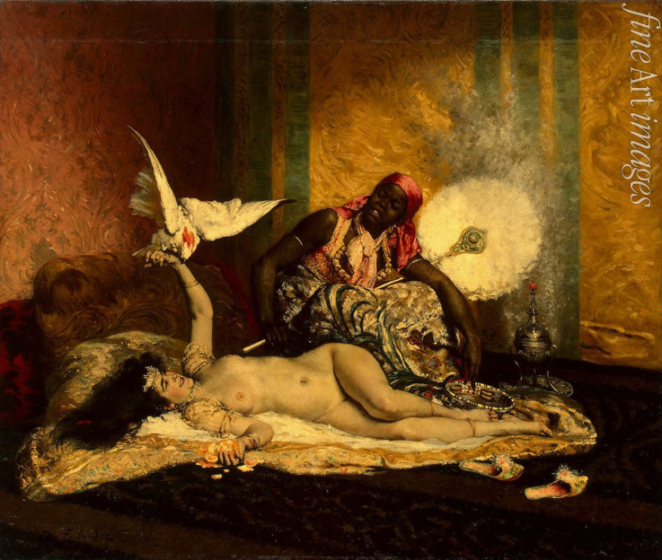 Nackt, Nacktheit, Melancholie, Nackte Frau, Romantik, Schönheit, Orientalisch, Junge Frau, Frauenbildnis, Frauenporträt, Akt, Harem, Orient, Moslemin, Moslemische Frau, Serail, Odaliske
