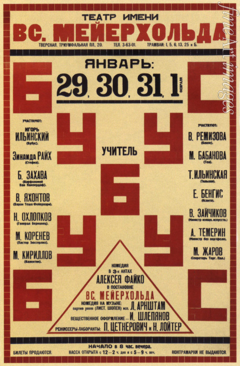 Plakat zum Theaterstück Lehrer Bubus im Theater von Wsewolod Meyerhold