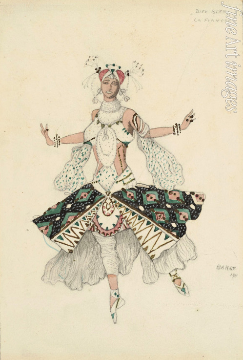 La Fiancee. Kostümentwurf für Tamara Karsawina zum Ballett Der blaue Gott von R. Hahn