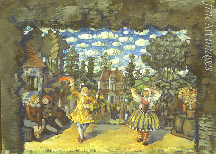 Ballett, Tanz, Karneval, Volksfest, Bühnenbildentwurf, Bühne, Belustigung, Tracht, Theater, Theaterstück, Feier, Fest, Unterhaltung, Folklore, Tradition, Fest auf dem Lande, Kerb, Brauchtum, Oper, Bühnenbild, Russisches Theater, Spass, Bühnenmalerei, Das Wirthaus Zum grünen Stier, Kusmin, Holländerin Lisa, Szenenbild, Szenografie, Theatermalerei, Dorffest