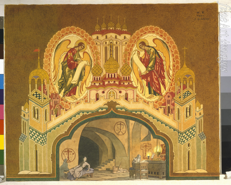 Tschudow-Kloster. Bühnenbildentwurf zur Oper Boris Godunow von M. Mussorgski