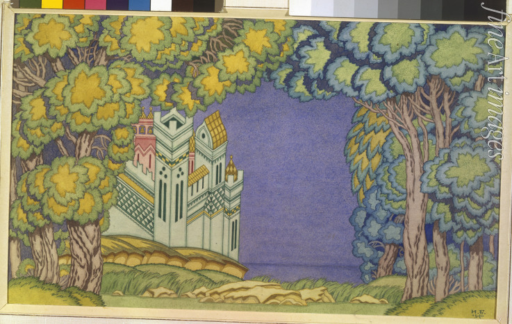 Insel Buyan. Bühnenbildentwurf zur Oper Das Märchen vom Zaren Saltan von N. Rimski-Korsakow