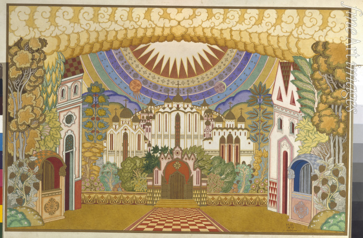 Bühnenbildentwurf zur Oper Die Legende von der unsichtbaren Stadt Kitesch und der Jungfrau Fewronija von N. Rimski-Korsakow