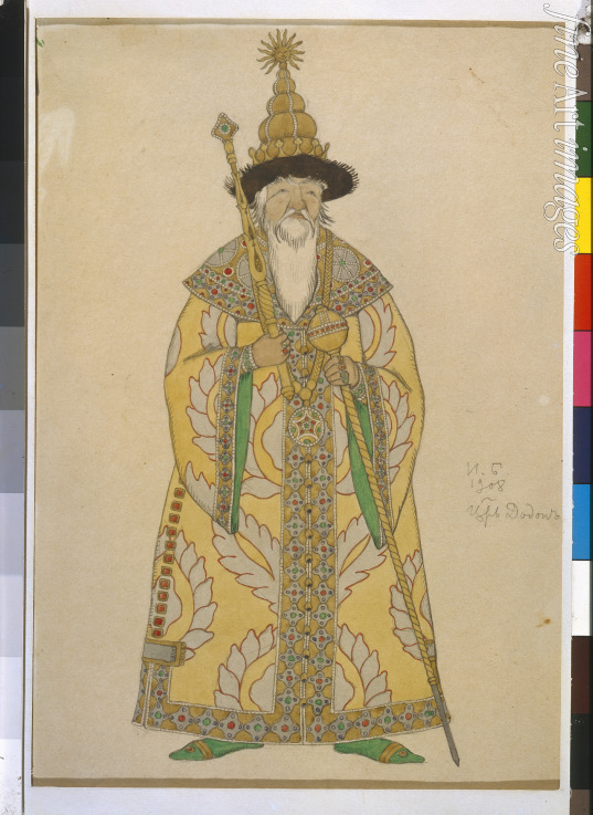 Zar Dadon. Kostümentwurf zur Oper Der goldene Hahn von N. Rimski-Korsakow