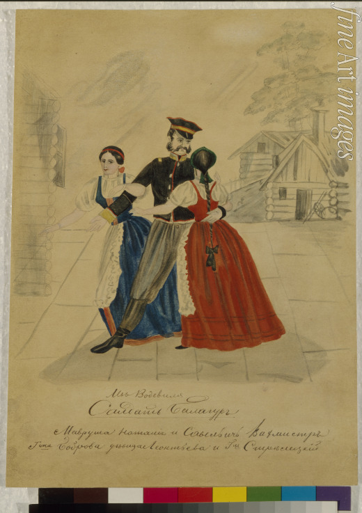 Eine Szene aus dem Theaterstück in einem Leibeigenen-Theater