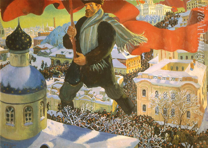 Winter, Schnee, Stadtbild, Symbol, Russland, Kirche, Russische Architektur, Demonstration, Proletariat, Revolution, Russische Revolution, Stadt, Volk, Allegorie, Sowjetische Agitations- und Propagandakunst, Unruhe, Russischer Winter, Macht, Kuppel, Bolschewik, Proletarier, Rote Fahne, Volksaufstand, Oktoberrevolution, 1917, Kundgebung
