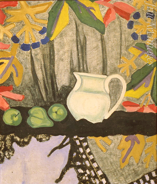 Dekorativ, Früchte, Obst, Naive Kunst, Auf dem Tisch, Krug, Stilleben, Birnen, Frauenkunst, Modern, Russische Avantgarde, Volkskunst, Kubofuturismus