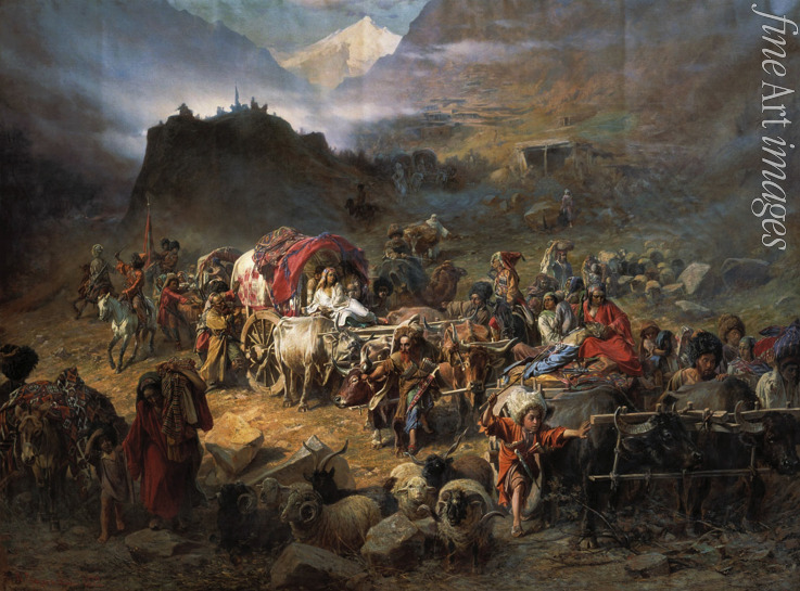 Bergbewohner verlassen den Aul vor dem Heranrücken der russischen Armee