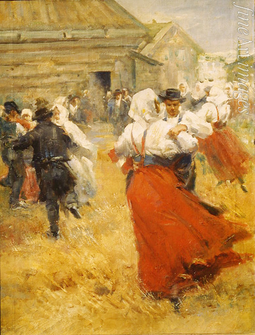 Musik, Tanz, Volksfest, Bauernhaus, Am Lande, Bauern, Bauernleben, Bauer, Dorflandschaft, Haus, Belustigung, Landfrau, Bäuerin, Tracht, Realismus, Fest, Unterhaltung, Folklore, Fest auf dem Lande, Kirmes, Kirchweih, Kerb, Brauchtum, Volkskunst, Trachtenkleid, Schweden, Volksmusik, Trachten look, Mittsommerfest, Midsommar, Mittsommer, Bauernfest, Bauerntanz, Dorffest, Johannistag, Johanni, Johannisfest, Johannestag, Fête de la Saint-Jean