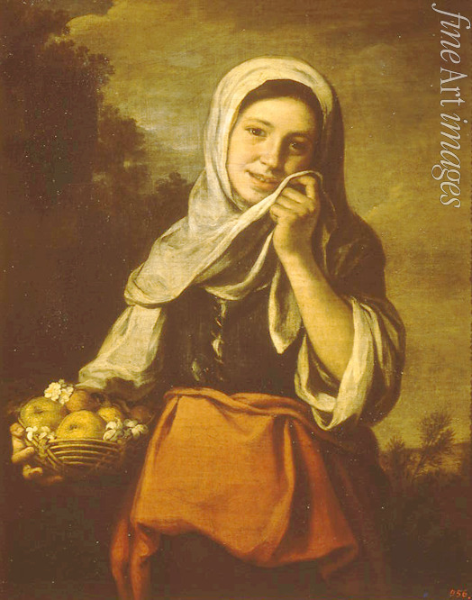 Früchte, Mädchen, Frau, Am Lande, Bauern, Bauernleben, Obst, Jugend, Jugendlich, Freude, Spanien, Junge Frau, Barock, Verkäuferin, Frauenbildnis, Frauenporträt, Unschuld, Beruf, Bauernmädchen, Verkauf, Arbeit, Obstverkäuferin