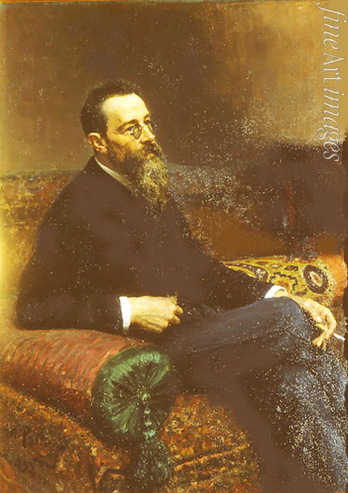 Ballett, Musik, Mann, Porträt, Russland, Russische Musik, Bildnis, Realismus, Male Porträt, Wanderer, Oper, Komponist, Klassische Musik, Peredwishniki-Bewegung, Rimskij-Korsakow, Rimski-Korsakow, Gruppe der Fünf, Das Mächtige Häuflein, Porträt des Komponisten Nikolai Rimski-Korsakow, Peredwischniki, Novatoren, Komponistengruppe, Komponisten