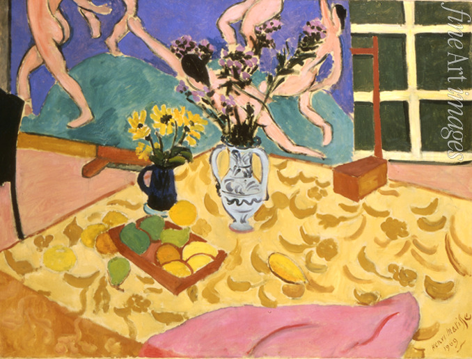 Fenster, Blumen, Dekorativ, Lokalfarben, Fauvismus, Frankreich, Atelier des Künstlers, Rosa, Früchte, Teppich, Nackt, Nacktheit, Körper, Rhythmus, Interieur, Stilleben, Modern, Vasen, Gemälde, Bewegung, Reigen, "Der Tanz"