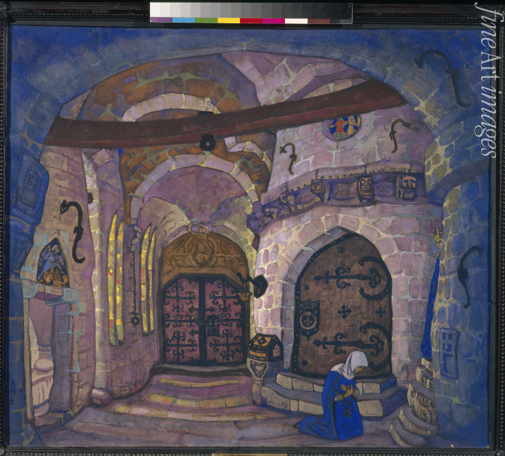 Im Kloster. Bühnenbildentwurf zur Oper Schwester Beatrice von A. Dawydow