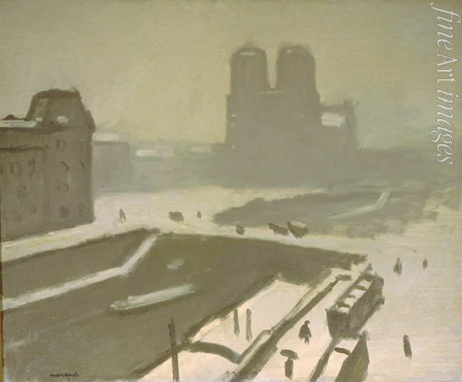 Winter, Winterlandschaft, Paris, Notre Dame, Schnee, Fauvismus, Frankreich, Jahreszeiten, Stadtbild, Großstadtszene, Straße, Brücke, Seine, Kathedrale, Uferstrasse, Notre-Dame, Trüb