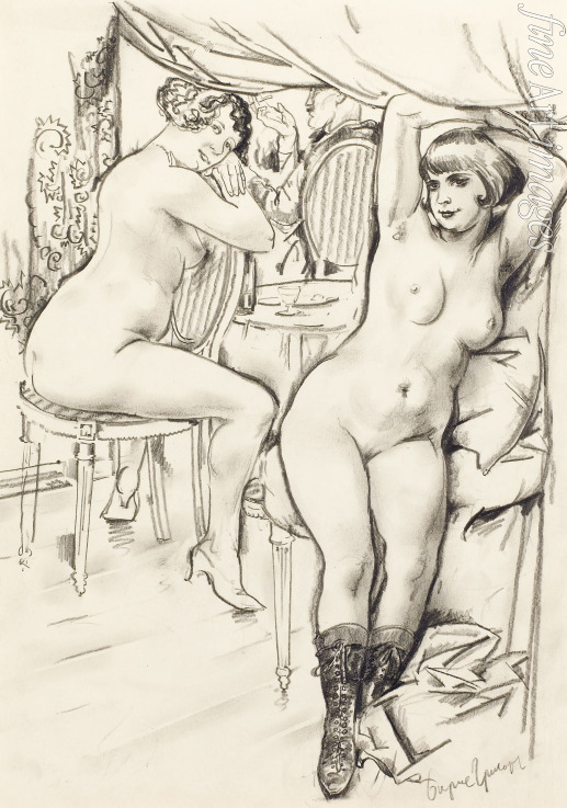 Paris, Frankreich, Nackt, Nacktheit, Dame, Mädchen, Nackte Frau, Körper, Satire, Erotik, Sexy, Alltag, Genreszene, Russische Avantgarde, Expressionismus, Langeweile, Dirne, Prostitution, Bordell, Puff, Groteske, Prostituierte, Käufliche Liebe, Freudenhaus