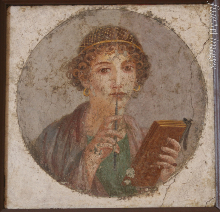 Poesie, Italien, Buch, Römische Antike, Süditalien, Lesen, Pompeji, Pompeii, Lyriker, Römisches Reich, Sappho, Lesende Frau, Beim Lesen, Lektüre, Lesbos, Wachstafelbuch, Stilus, Stylus