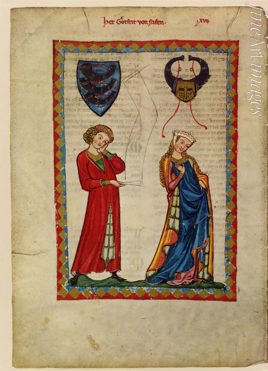Musik, Lied, Musikinstrumente, Musiker, Musikant, Musizieren, Deutschland, Singen, Melodie, Gesang, Handschrift, Mittelalter, Deutsche Geschichte, Buchmalerei, Manuskript, Bilderhandschrift, Minnesang, Minnesänger, Trobadors, Codex Manesse, Gottfried von Neifen, Ménestrel, Minstrel, Minstrels, Ménestrels, Ménétriers, Troubadour, Miniatur