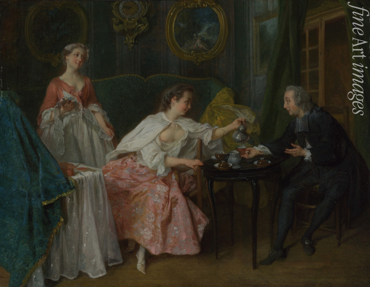 Frankreich, Morgen, Dame, Tageszeiten, Frau, Kaffee, Porzellan, Rokoko, Frauenbildnis, Frauenporträt, Adel, Aristokratie, Kaffeegeschirr, Kaffeekanne, Kaffeetrinken, Vier Tageszeiten