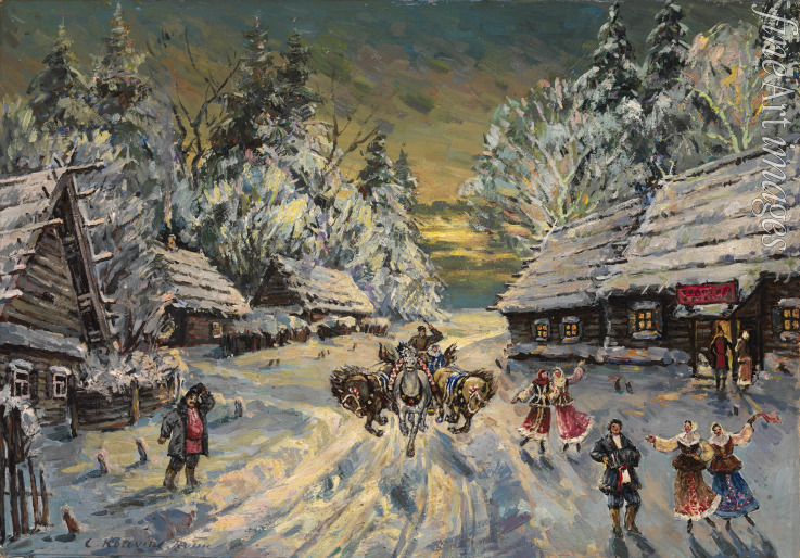 Winter, Winterlandschaft, Schnee, Frost, Jahreszeiten, Stadtbild, Straße, Mardi Gras, Karneval, Volksfest, Fasching, Fastnachtszeit, Farbigkeit, Häuser, Russland, Pferd, Belustigung, Winterszene, Kutsche, Ross, Strassenszene, Feier, Folklore, Brauchtum, Provinz, Russischer Winter, Schlitten, Stadtszene, Faschingszeit, Spass, Kutschenfahrt, Kutscher, Pferdeschlitten, Schlittenfahrt, Troika, Dreigespann, Masleniza, Betonung auf der ersten Silbe, Butterwoche, Jamschtschik, Jamschik, Pferdewagen, Kibitka