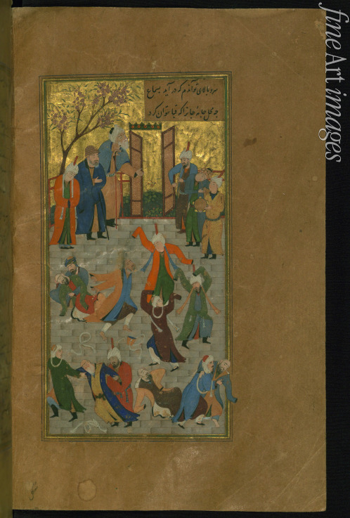 Tanz, Persien, Handschrift, Buchminiatur, Buchmalerei, Sufismus, Sufi, Manuskript, Bilderhandschrift, Persische Literatur, Persische Miniaturmalerei, Islamische Kunst, Isfahan, Divan, Hafes, Hafez, Hafiz, Mevlevi, Sema-Zeremonie, Sema Zeremonie, Sama-Zeremonie, Sama Zeremonie, Sufi-Bruderschaften, Sufi Bruderschaften, Sufis, Miniatur