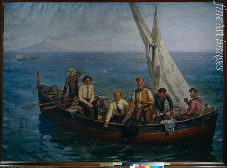 Lenin und Schriftsteller Maxim Gorki mit Fischer auf der Insel Capri