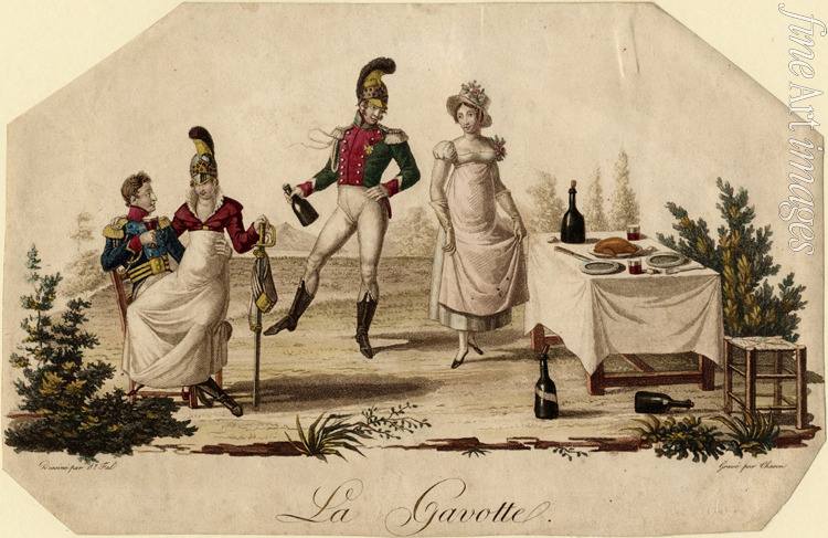 Tanz, Dame, Frau, Lustige Gesellschaft, Picknick, Junge Frau, Belustigung, Heiterkeit, Lustigkeit, Kavalier, Dragoner, Gavotte