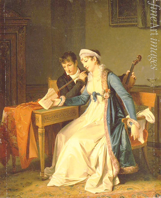 Frankreich, Musik, Idyll, Liebe, Musikinstrumente, Violine, Interieur, Musiker, Musikant, Musizieren, Geige, Noten, Notenblätter, Partituren, Liebende, Musikstunde, Musikantin, Musikunterricht, Frauenkunst, Notenblatt, Musikinstrument