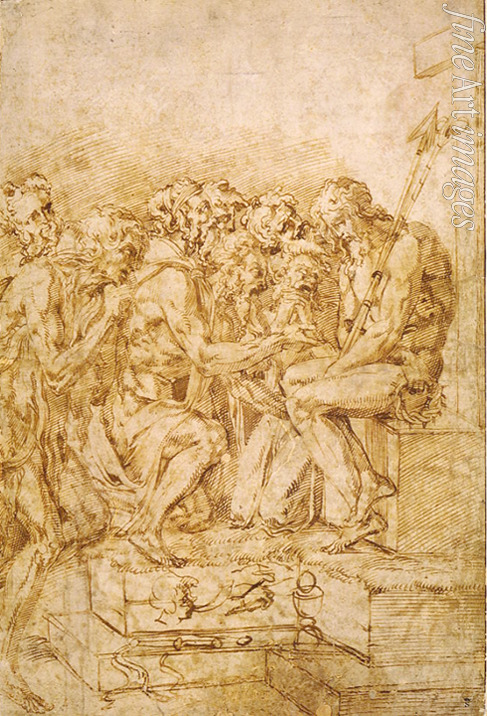 Bandinelli Baccio - Christus mit Sinnbilder der Passion, von sieben Figuren umgeben