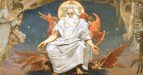 Jugendstil, Bibel, Altes Testament, Neues Testament, Mythologie, Christentum, Wanderer, Gott, Dreifaltigkeit, Dreieinigkeit, Trinität, Orthodoxe Kirche, Russische Kirche, Religion, Creatio, Kreation, Universum, Ursprung, Himmelreich, Reich Gottes, Gott Vater, Gotteswort, Wort Gottes, Logos, Peredwischniki, Wiener Secession, Art nouveau, Modern Style, Modernisme, Stile Liberty, Reformstil, Stil Modern, Fin de siècle, Zebaoth, Sabaoth, Gottvater, Gnadenstuhl, Heilige Dreifaltigkeit