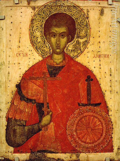 Ikone, Ikonenmalerei, Krieger, Thron, Märtyrer, Christentum, Martyrium, Glaube, Heiliger, Treue, Heiligen, Priester, Beschützer, Orthodoxe Kirche, Russische Kirche, Schutzheiliger, Kiewer Rus, Diakon, Schutzpatron, Bischof, Kiew, Mittelalter, Heilige Demetrios von Saloniki auf dem Throne, Demetrios, Demetrios von Saloniki, Demetrios von Thessaloniki, Dimitri Solunski, Dimitrios, Demetrius, Heiliger Demetrios