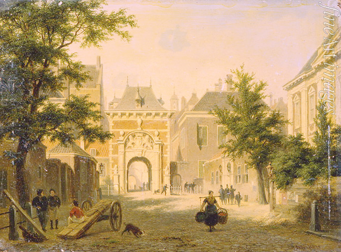 Sommer, Stadtbild, Mittag, Tageszeiten, Lichtwirkung, Häuser, Ansicht, Blick, Strassenszene, Strassenecke, Stadt in Holland, Holländische Landschaft, Niederländische Malerei