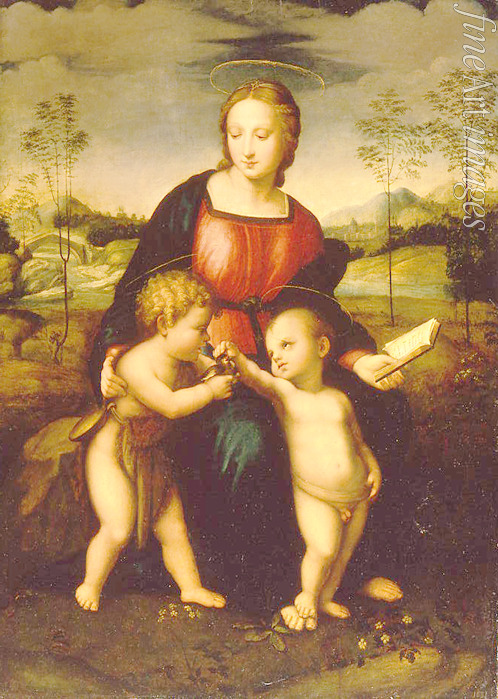 Madonna, Kind, Bibel, Renaissance, Neues Testament, Maria, Gottesmutter, Jesuskind, Heilige Familie, Märtyrer, Italienische Landschaft, Jungfrau, Christuskind, Madonna und Kind, Christentum, Martyrium, Theologie, Heiliger, Treue, Apostel, Heiligen, Jesus Christus, Johannes der Täufer, Evangelien, Apostelgeschichte, Johannesknabe, Prophet, Marienbild, Jünger von Jesus, Evangelist, Marienfigur, Madonnenbild, Raffael da Urbino, Raffaello Sanzio, Raphael, Raffaello, Distelfink, Marienbildnis