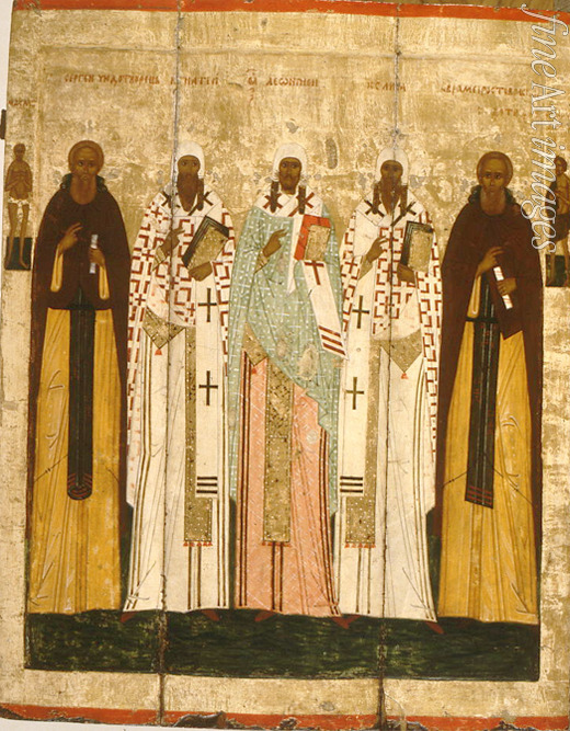 Der Heilige Sergius von Radonesch mit den Heiligen von Rostow