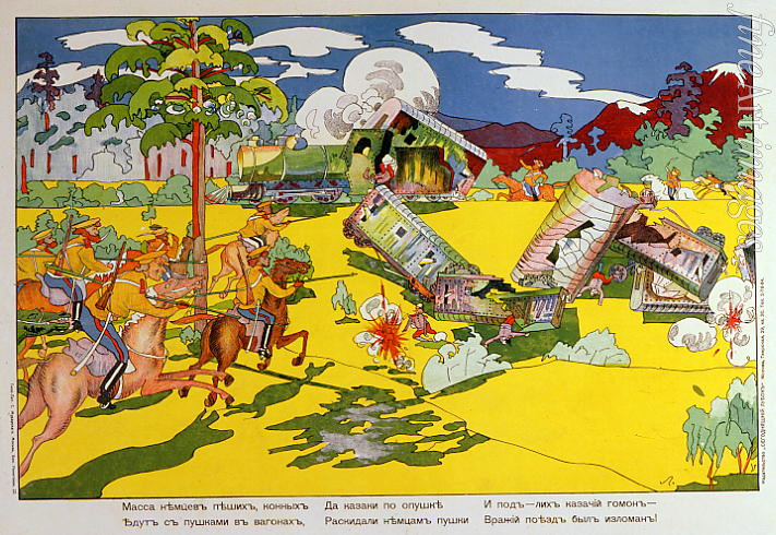 Russland, Satire, Krieg, Allegorie, Erster Weltkrieg, Propaganda, Russische Armee, Plakat, Weltkrieg, Agitation, Groteske, Politisches Plakat, Lubok, Volksbilderbogen, Grotesque