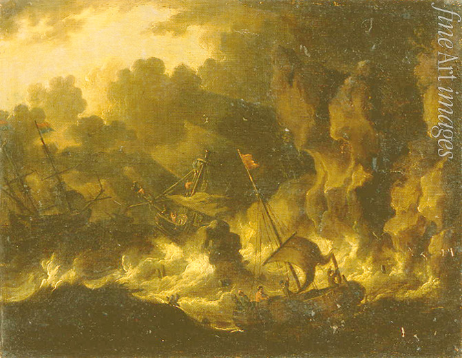 Meer, Meereslandschaft, Wellen, Felsen, Barock, Unwetter, Sturm, Schiff, Schiffbruch, Schiffskatastrophe, See, Woge, Stürmische See, Überleben, Überlebende, Überlebenskampf, Naturgewalten