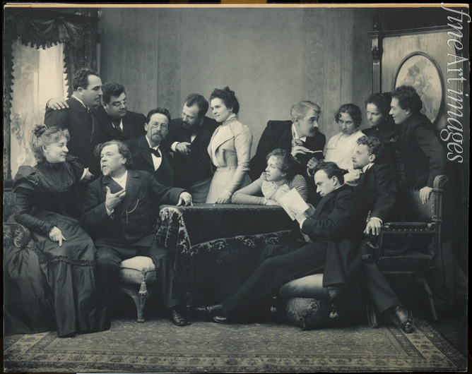 Anton Tschechow zwischen Darstellerinnen und Darsteller des Theaterstücks Die Möwe
