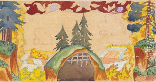 Bühnenbildentwurf zur Oper Der goldene Hahn von N. Rimski-Korsakow