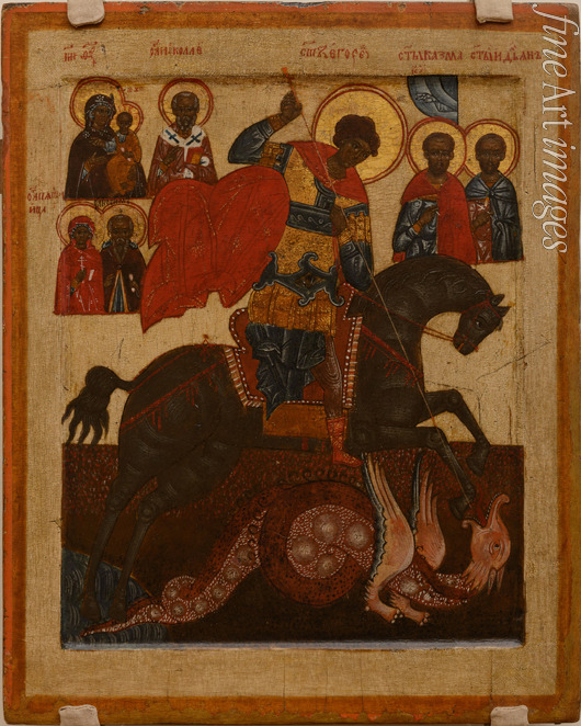 Ikone, Ikonenmalerei, Krieger, Märtyrer, Martyrium, Ritter, Heiliger, Heiligen, Gutes und Böses, Drachenwunder des heiligen Georg, Georg, Sankt Georg, Christliche Mythologie, Drache, Beschützer, Orthodoxe Kirche, Russische Kirche, Schutzheiliger, Schutzpatron, Heiliger Georg