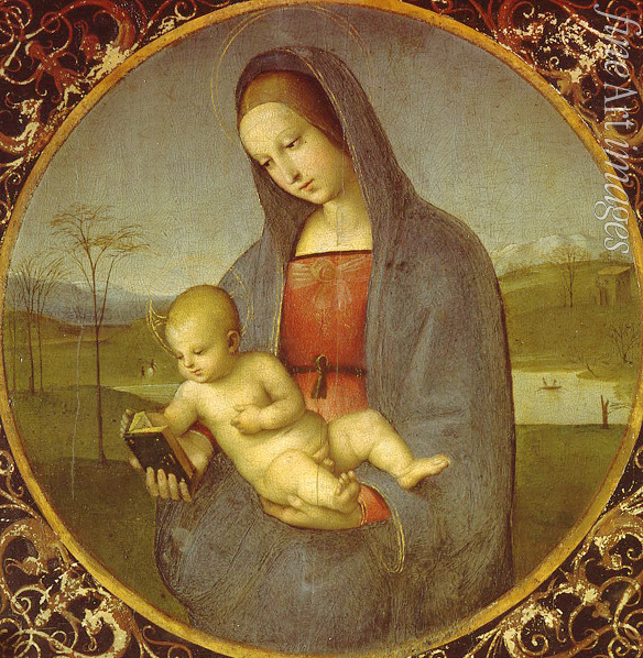 Schlüssel-wörter: Berglandschaft, Madonna, Bibel, Renaissance, Neues Testament, Maria, Madonna mit dem Kind, Gottesmutter, Jesuskind, Heilige Familie, Italienische Landschaft, Jungfrau, Christuskind, Madonna mit dem Buch, Madonna Conestabile, Marienbild, Marienfigur, Madonnenbild, Raffael, Raffael da Urbino, Raffaello Santi, Raffaello Sanzio, Raphael, Raffaello, Marienbildnis