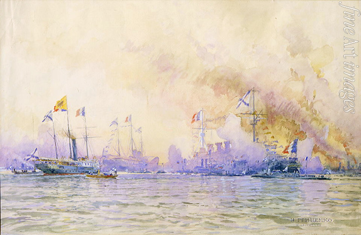 Frankreich, Wolken, Meer, Meereslandschaft, Russland, Boot, Realismus, Schiff, See, Russische Geschichte, Maritime Malerei, Marinemalerei, Flotte, Linienschiffe, Fregatte, Alliierten, Kriegsschiff, Kronstadt, Alliierte, Militärallianz, Ankunft des französischen Geschwaders, Annäherung Russlands und Frankreichs, Militärkonvention, Geschwader, Französische Flotte, Linienschiff, Segellinienschiff, HMS, Kronshtadt, Cronstadt, Kotlin, Kronslot, Cronslot