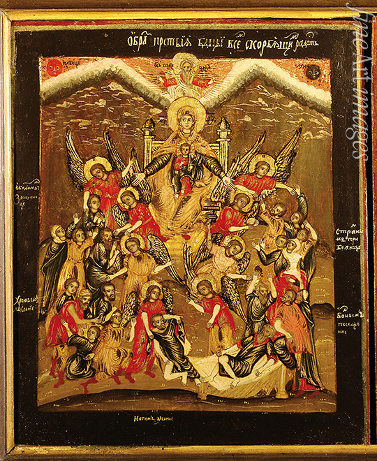 Musik, Hoffnung, Madonna, Ikone, Ikonenmalerei, Bibel, Engel, Neues Testament, Maria, Gottesmutter, Jungfrau, Marienkrönung, Mariä Verherrlichung, Königin des Himmels, Berufung Gottes, Höhepunkt, Vollendung, Krönung Mariae, Liturgie, Marienbild, Orthodoxe Kirche, Russische Kirche, Schutz, Marienfigur, Madonnenbild, Schirm, Fürbitte, Leidtragenden, Leid, Freude aller Leidtragenden, Marienbildnis