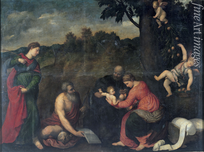 Die Heilige Familie mit Heiligen Hieronymus, Katharina von Alexandrien und Engeln