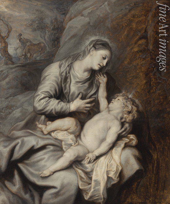 Idyll, Mutterschaft, Madonna, Barock, Bibel, Engel, Neues Testament, Rast, Maria, Gottesmutter, Jesuskind, Heilige Familie, Mutter, Die Flucht nach Ägypten, Jungfrau, Christuskind, Putten, Marienbild, Marienfigur, Madonnenbild, Ruhe auf der Flucht nach Ägypten, Marienbildnis